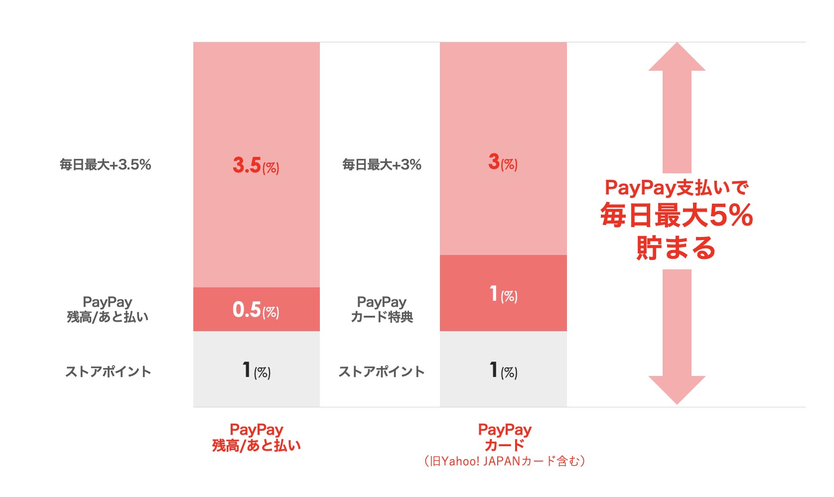 ■内容:「PayPayあと払い」「PayPay残高」「PayPayカード」で支払った場合、毎日最大5%、Yahoo!プレミアム会員であれば毎日最大7%のPayPayポイントを付与(※5)