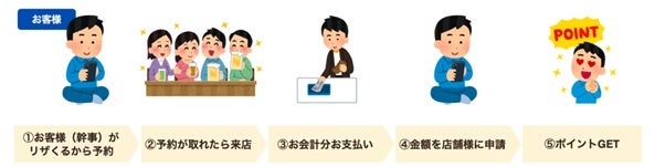 幹事様は登録のある店舗でお得に食事ができ、割引率に応じたポイントバックを受け取ることができます。