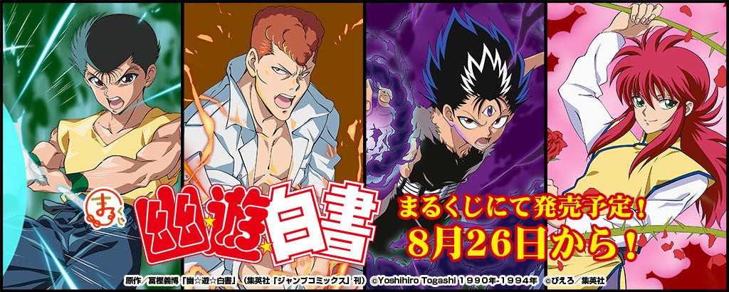 今回は「幽助」「桑原」「蔵馬」「飛影」の描き下ろしイラストを使用した『まるくじ』でしか手に入らない限定商品をご用意いたしました。