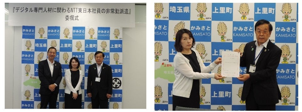 上里町(町長:山下博一)と東日本電信電話株式会社 埼玉支店(執行役員 支店長:市川泰吾、以下「NTT東日本」)は、2020年1月17日に締結した「美里町及び上里町と東日本電信電話株式会社埼玉支店とのICT・IoT等の活用による地域活性化に向けた連携に関する協定書」に基づき、自治体DX並びにデジタル田園都市国家構想を踏まえた取り組みの推進と深化を図るため、NTT東日本の社員を上里町に派遣する体制を整備し、以下の委嘱式を開催いたしました。