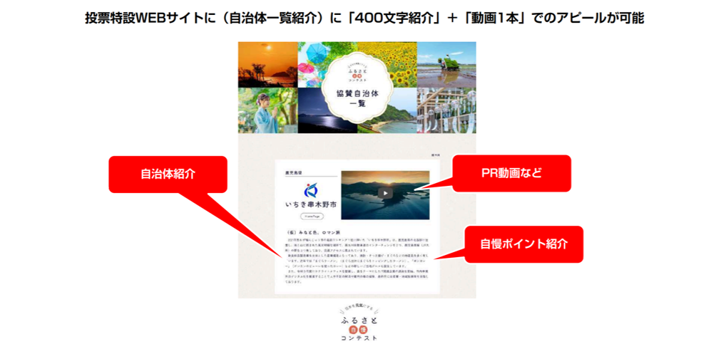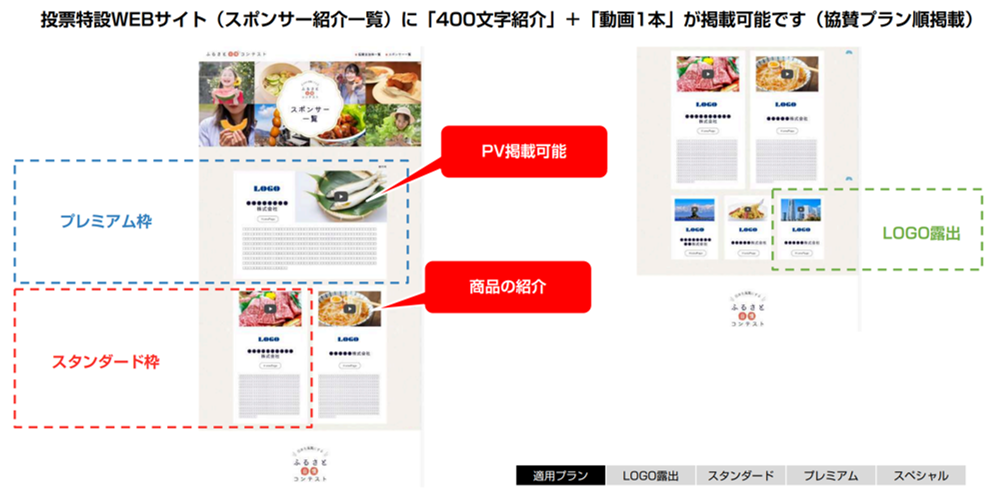 イベント特設サイトにて一般投票、スポンサー審査等により「地元自慢の部」「商品自慢の部」入賞作品各6点ずつ選定。