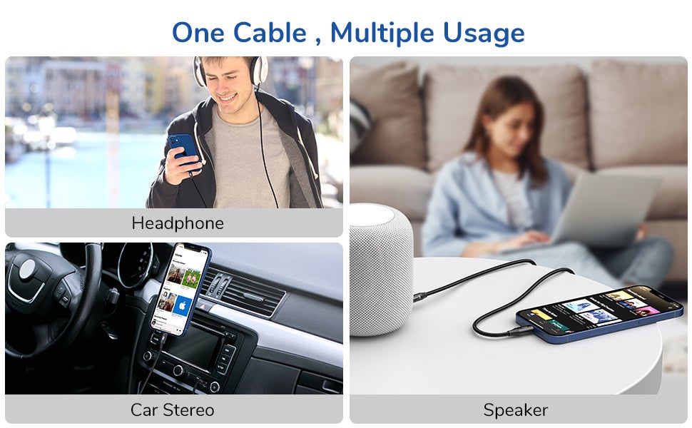 | 対応機種 | iPhoneモデル iPhone 13 mini, 13, 13 Pro, 13 Pro Max ,12 mini, 12, 12 Pro, 12 Pro Max iPhone SE (第2世代、第1世代),11, 11 Pro, 11 Pro Max iPhone XS ,XS Max , XR , X , 8 , 8 Plus ,7 , 7 Plus , 6S , 6S Plus iPad モデル iPad Pro 12.9-インチ (第2世代, 第1世代) , 10.5-インチ, 9.7-インチ iPad Air (第3世代,第4世代) iPad mini (第5/4世代) iPad (第8/7/6/5世代) ヘッドフォン、Hi-Fiステレオサウンドシステム、カーステレオ、3.5mmのAUXポートを備えたポータブルBluetoothスピーカーなど対応できます。 |