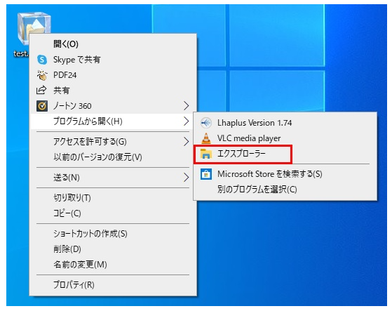 step4:「プログラムから開く」>「エクスプローラー」を選択します。