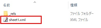 step7:デスクトップに保存したsheet1.xmlをメモ帳で開きます。