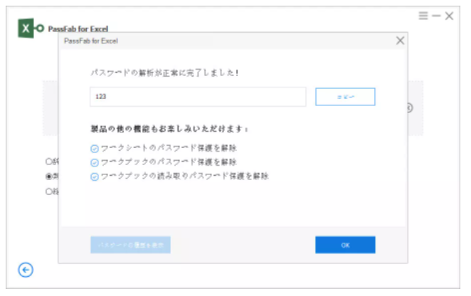 step3:しばらくすると、エクセルファイルのパスワードが表示されます。