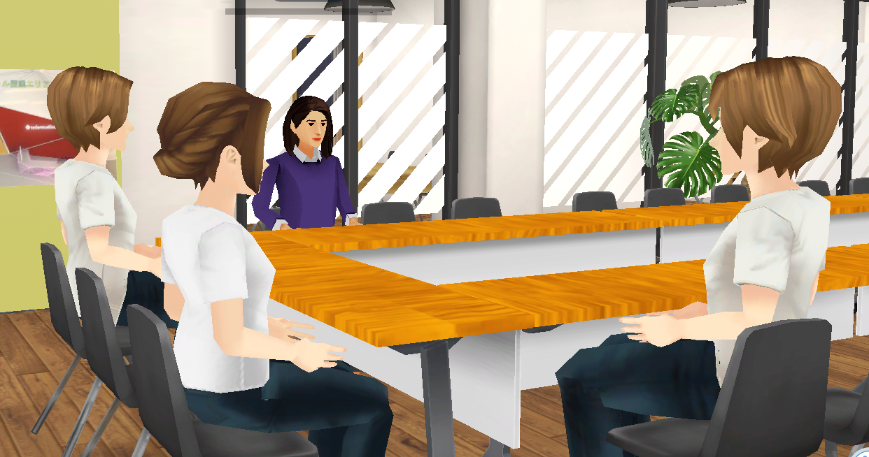 また案内役は、VR空間内の操作・移動に戸惑う生徒に対し、文字チャットやボイス機能にて個別に対応。