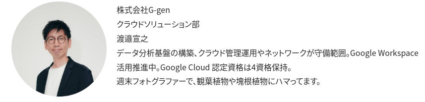 株式会社G-genは、サーバーワークスグループとして「クラウドで、世界を、もっと、はたらきやすく」をビジョンに掲げ、2021年よりクラウドの導入から最適化までを支援しているGoogle Cloud専業のクラウドインテグレーターです。