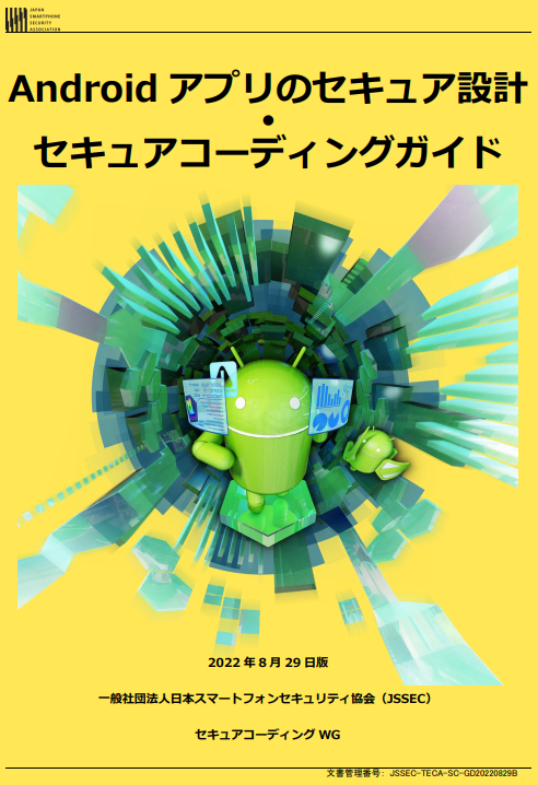 一般社団法人日本スマートフォンセキュリティ協会(JSSEC:会長 佐々木 良一)の技術部会 セキュアコーディングWG(リーダー 宮崎 力)は、2012年6月に公開した『Android アプリのセキュア設計・セキュアコーディングガイド』(以下 本ガイド)の14版目の改定版である2022年8月29日版を公開しました。