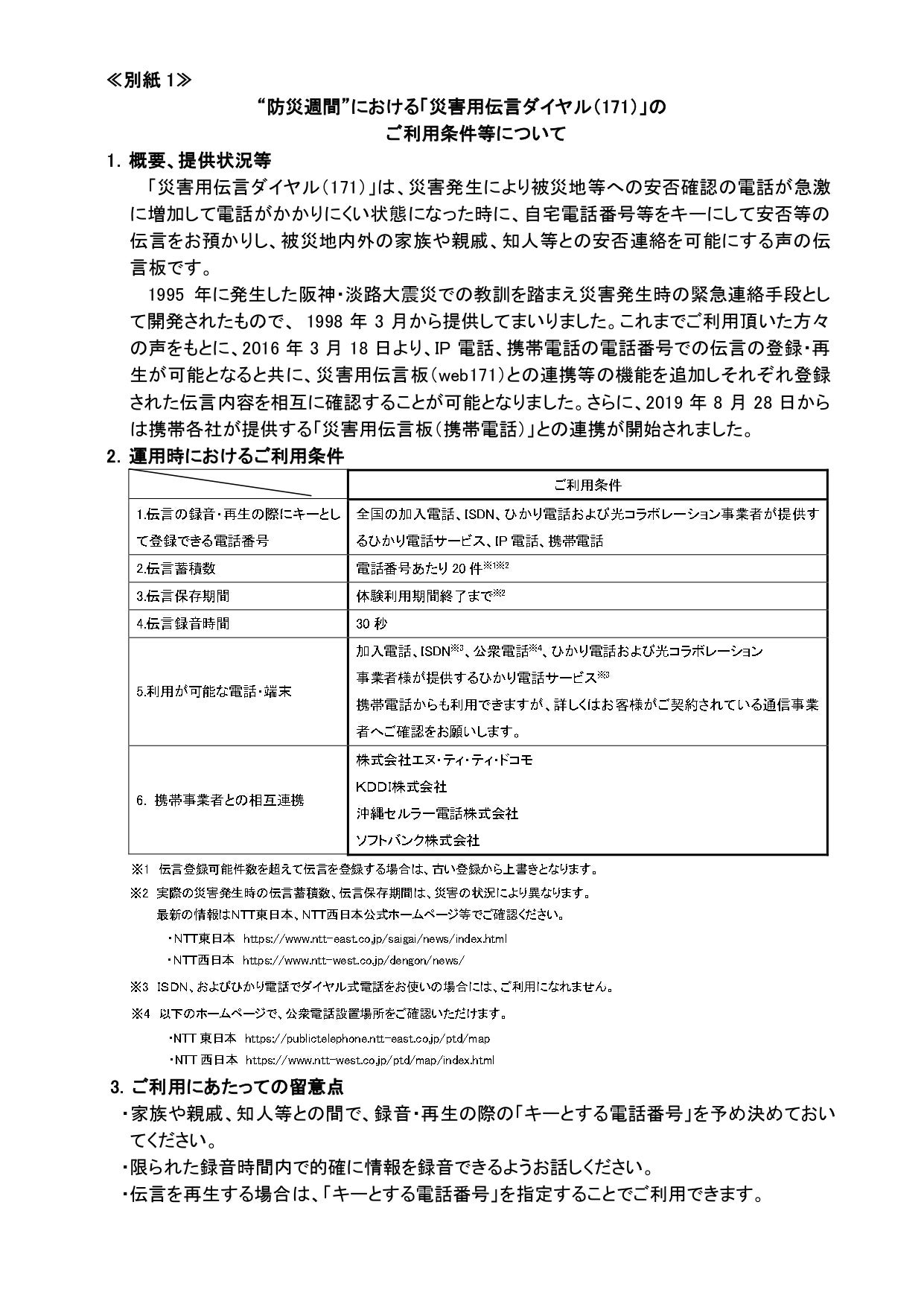 • ≪別紙3≫“防災週間”における「災害用伝言板(web171)」のご利用条件等について