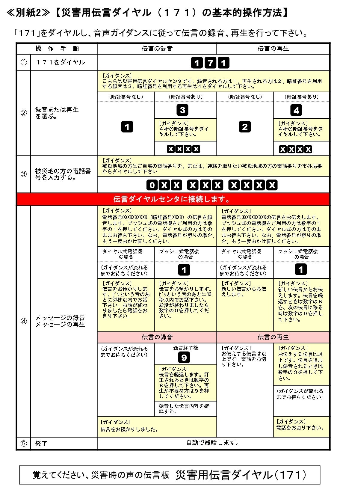 • ≪別紙2≫「災害用伝言ダイヤル(171)」の基本的操作方法