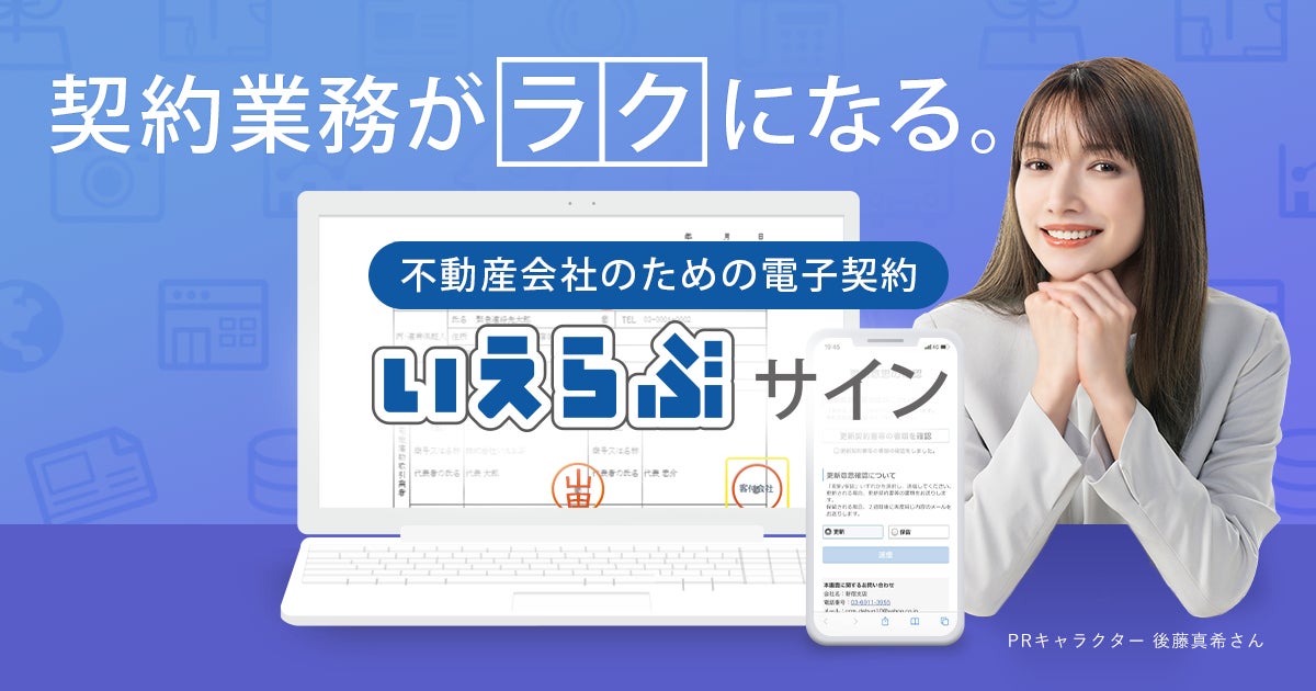いえらぶGROUPが提供する不動産業専用の電子契約サービスです。賃貸借契約の締結・更新・解約業務をオンライン上で完結することを可能にします。弊社が提供する基幹システム「いえらぶCLOUD」に依存せず、現在ご利用の基幹システムと連携してご利用いただけます。