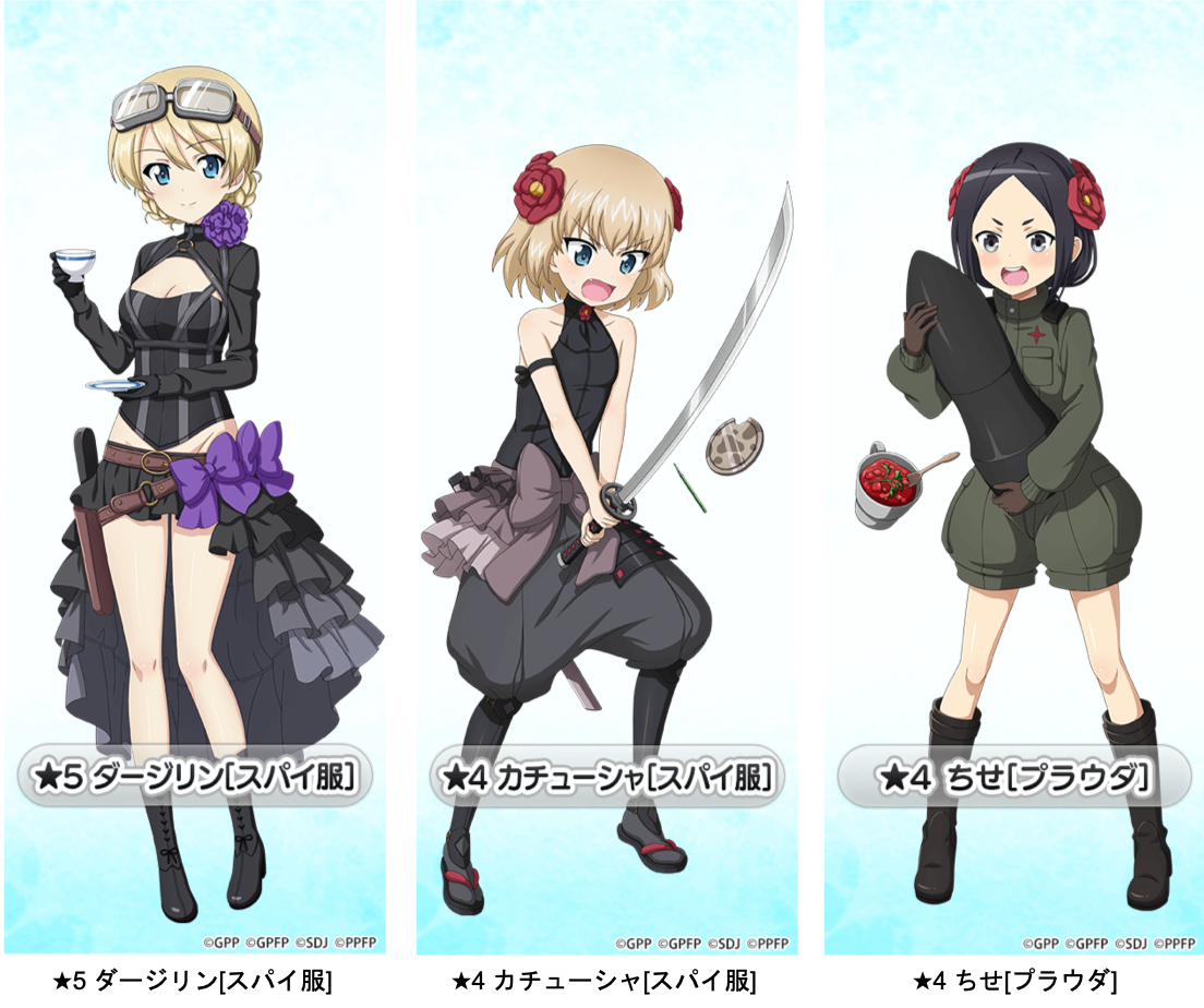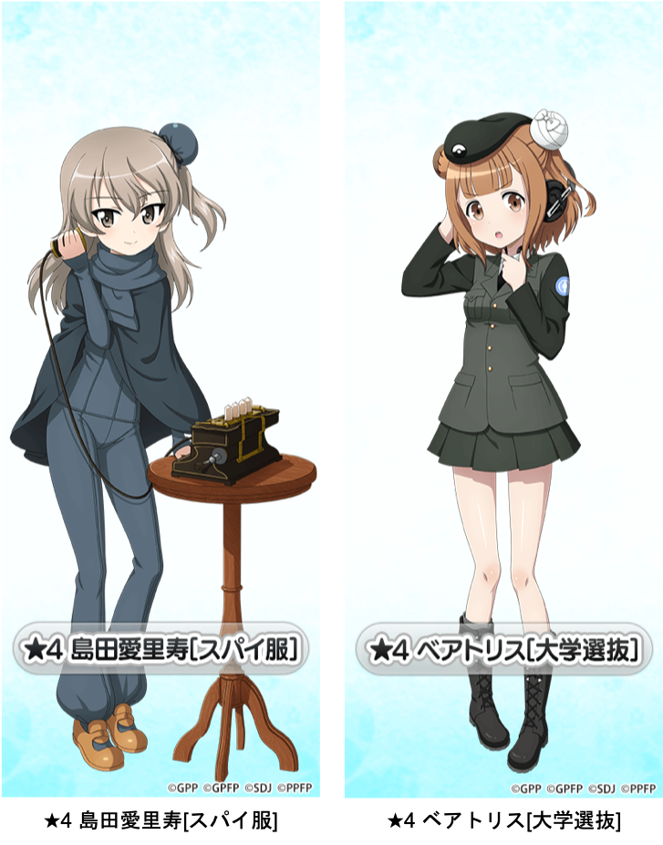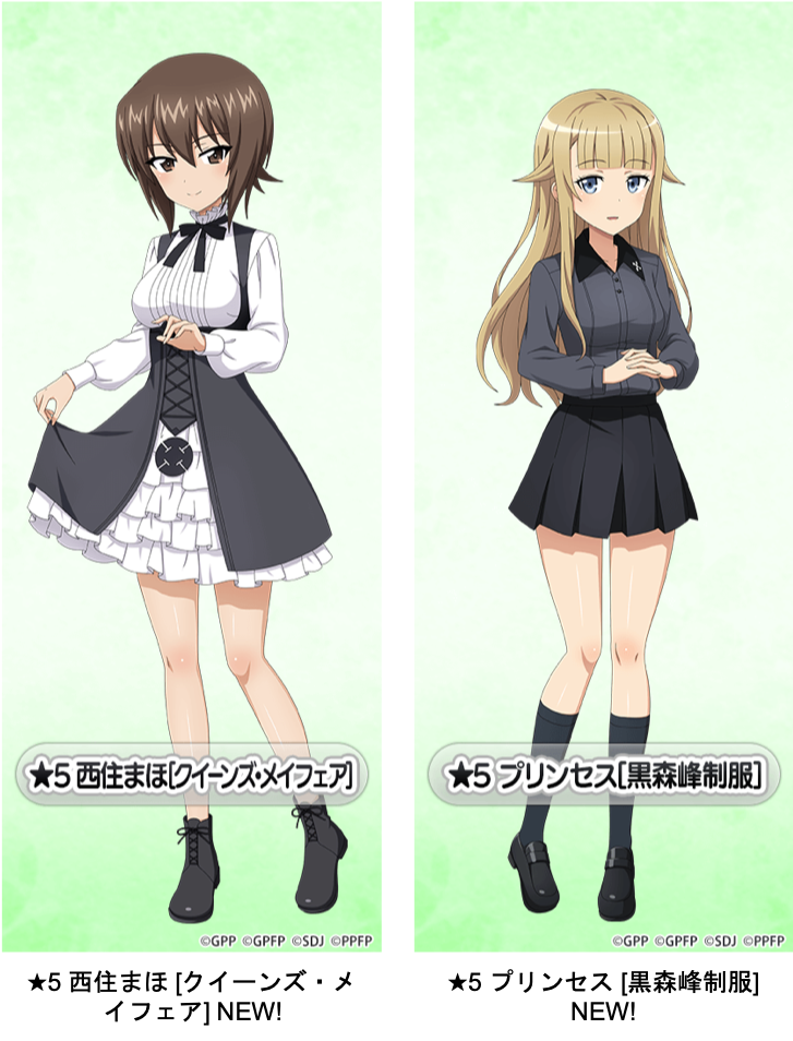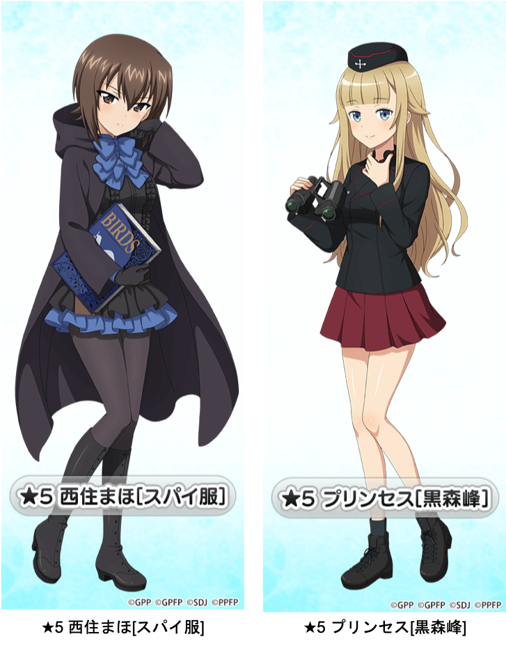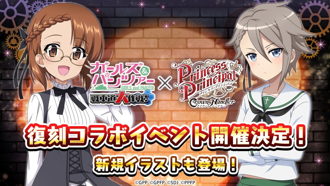 コラボ期間中は『プリンセス・プリンシパル Crown Handler』のキャラクター、アンジェ・プリンセス・ドロシー・ベアトリス・ちせと、コラボ限定の西住みほ・西住まほ・ダージリン・島田愛里寿・カチューシャが再登場する他、一部キャラクターは新規イラストで追加登場いたします。