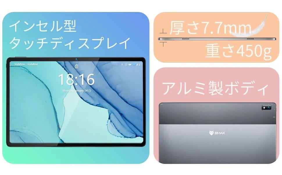 GPS機能とBluetooth5.0も搭載しております。タブレットはわずか薄さ7.7mm、重さ450gなので、仕事・勉強・外出先など、持ち歩きにも便利です。