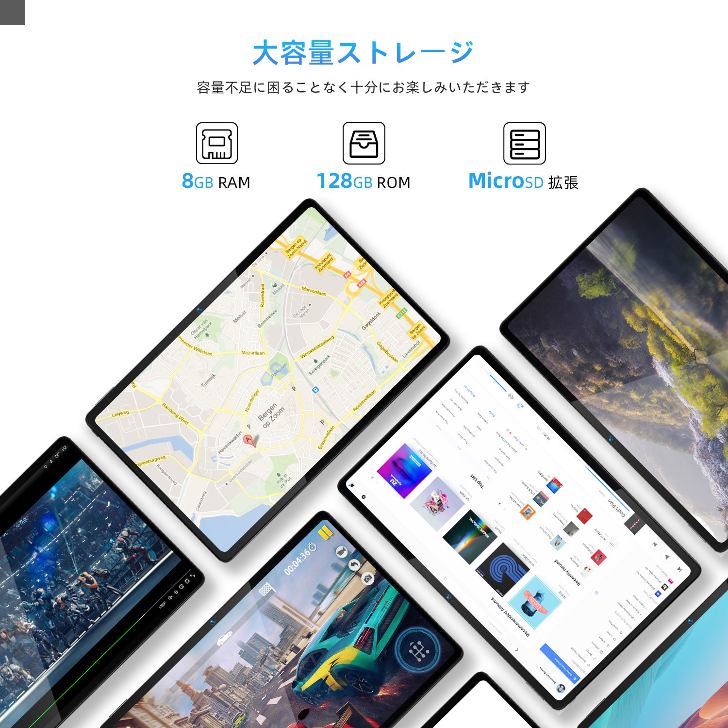 8GBのランニングメモリと128GBの高速ストレージを搭載、ストレージに拡張可能なMicroSDをサポートしています。メモリ容量が大きいとタブレットはサクサク動くようになります。Webサイトや動画を見たり、重いアプリや高画質のゲームを楽しみいただきます。
