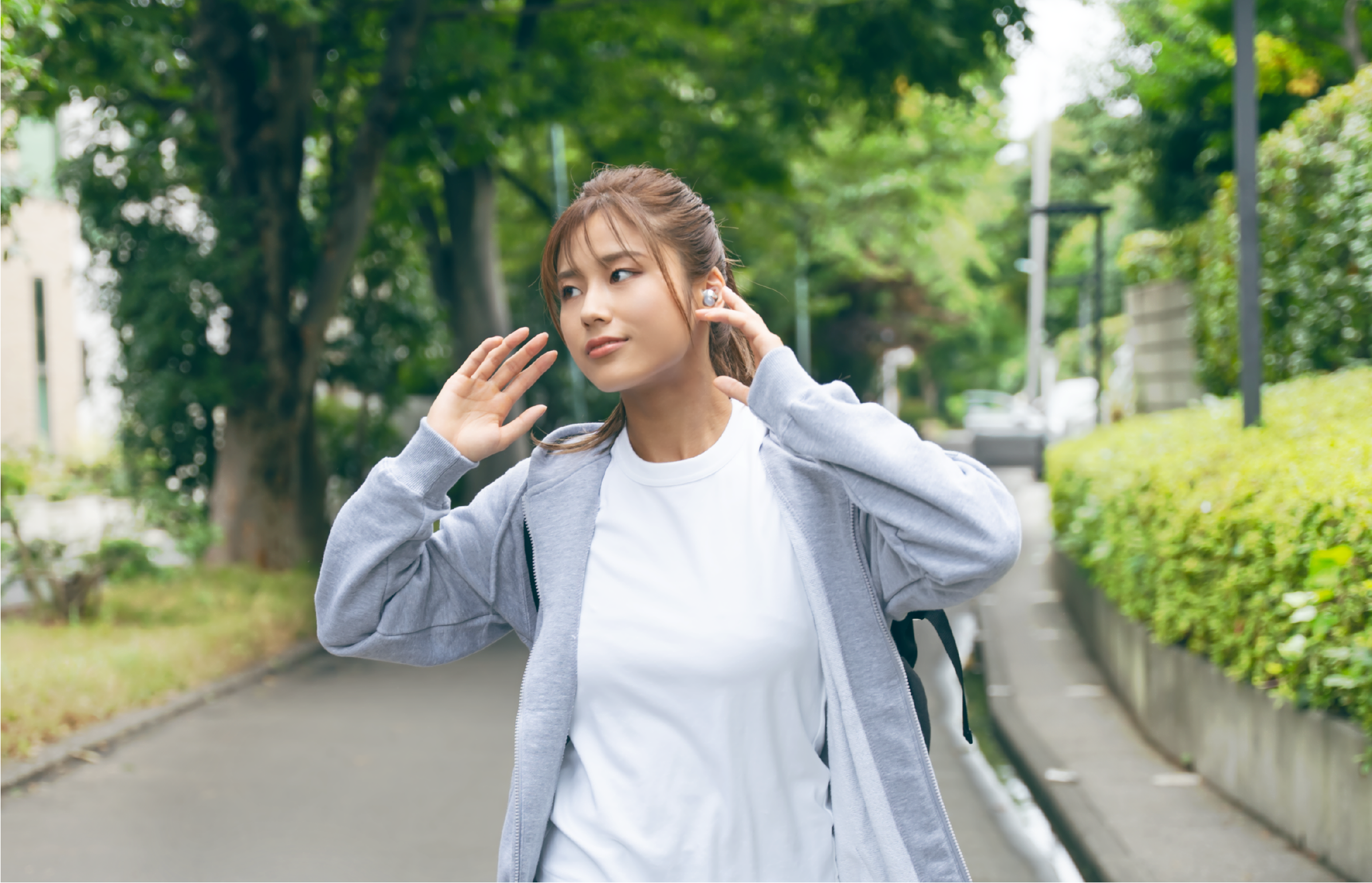 自宅や人の少ない屋外では、より高音質で音楽が楽しめる「高音質モード」、人の多い場所や周囲への音漏れが気になるときは、「音漏れ抑制モード」、というように、使用シーンや環境に合わせ、2つのモードを使い分けることができます。切り替えはワンタップするだけなので簡単・スピーディー。難しい設定や操作をせずとも、その時々で最適な楽しみ方ができるイヤホンです。