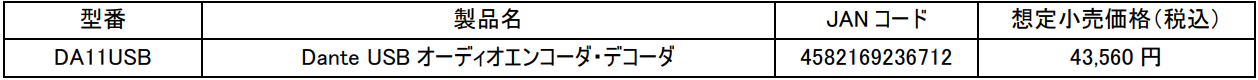DA11USBは、PCとDante対応スピーカー、マイク、ミキサーなどを、ネットワークを介して接続可能で、会議室、プレゼンテーションルーム、イベント、ライブ配信、レコーディングなどのあらゆるオーディオアプリケーションに最適なDante USBオーディエンコーダ・デコーダです。