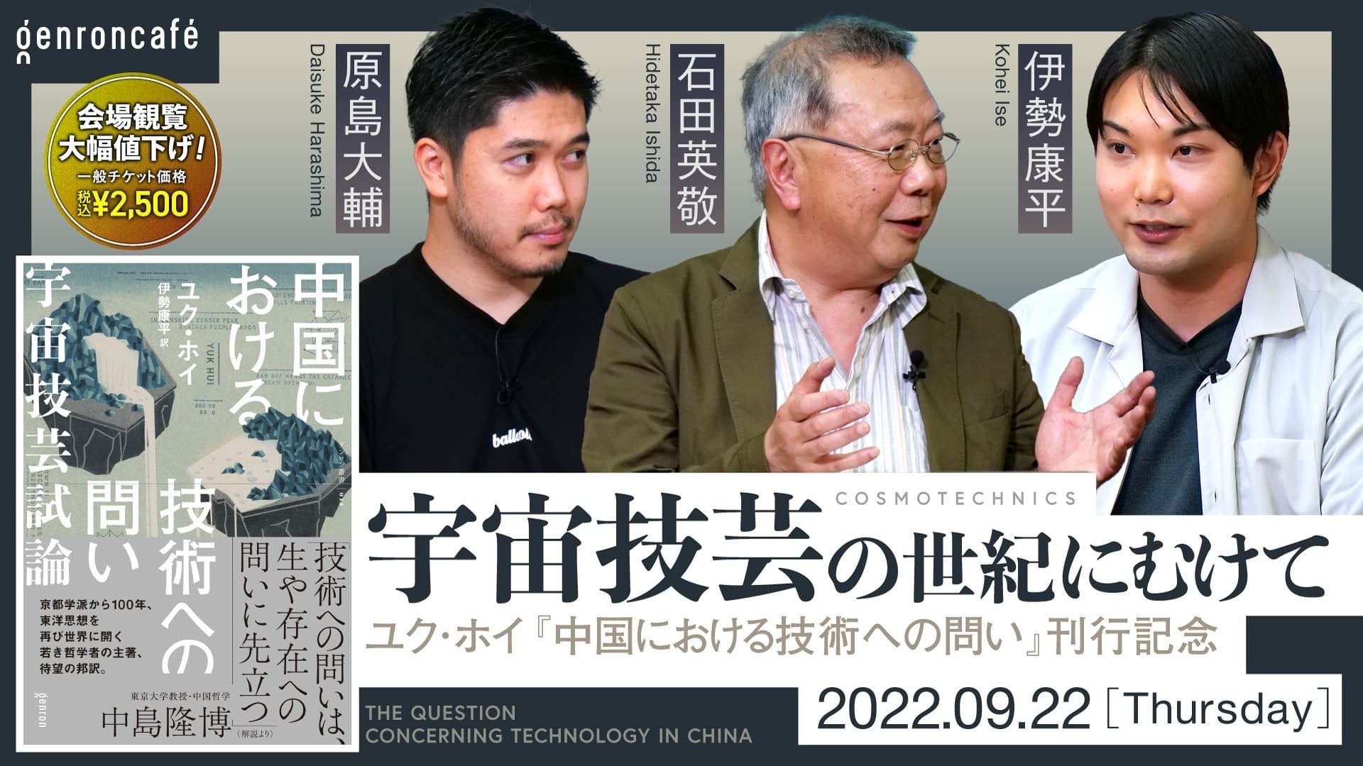 この度ゲンロンカフェでは、本書の刊行記念として、東京大学名誉教授の石田英敬氏、今年2月に青土社より邦訳が刊行されたホイ氏の『再帰性と偶然性』の訳者である原島大輔氏、そして本書の翻訳を手がけた伊勢康平氏によるトークイベントを開催する。