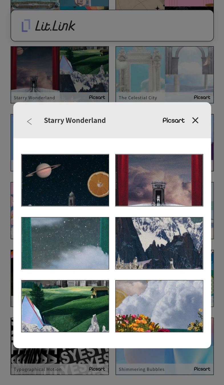 よりオリジナリティを表現したいユーザーは、Picsartアプリで自分の好きなように画像を制作し、lit.linkにインポートして背景に設定することも可能です。