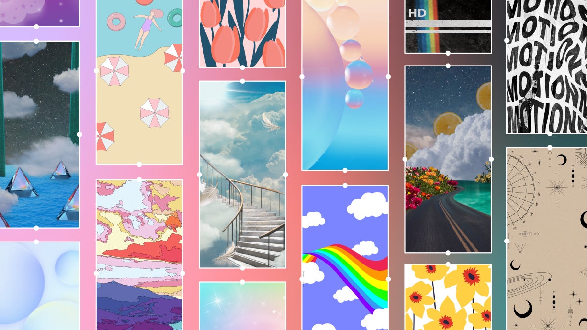カラフルな「Funny Rainbow」や幻想的な「The Celestial City」、インパクトのある「Typographical Motion」など、これまでにないテイストの背景が選択できるようになり、よりクリエイティブの幅が広がります。
