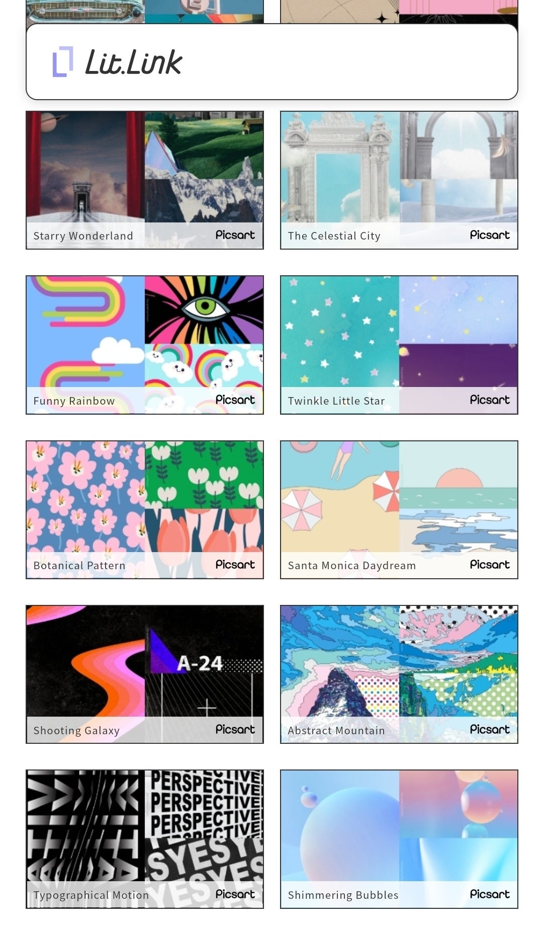 よりオリジナリティを表現したいユーザーは、Picsartアプリで自分の好きなように画像を制作し、lit.linkにインポートして背景に設定することも可能です。