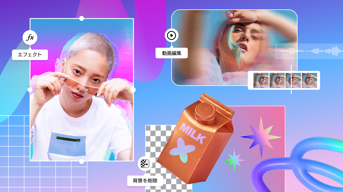 Picsartは、世界最大級のクリエイティブプラットフォームとして3,000以上の写真&動画編集ツール(切り抜き、AI画像補正、背景除去 等)を提供しています。さらにPicsart内にはステッカーや背景など、豊富なコンテンツが揃っています。