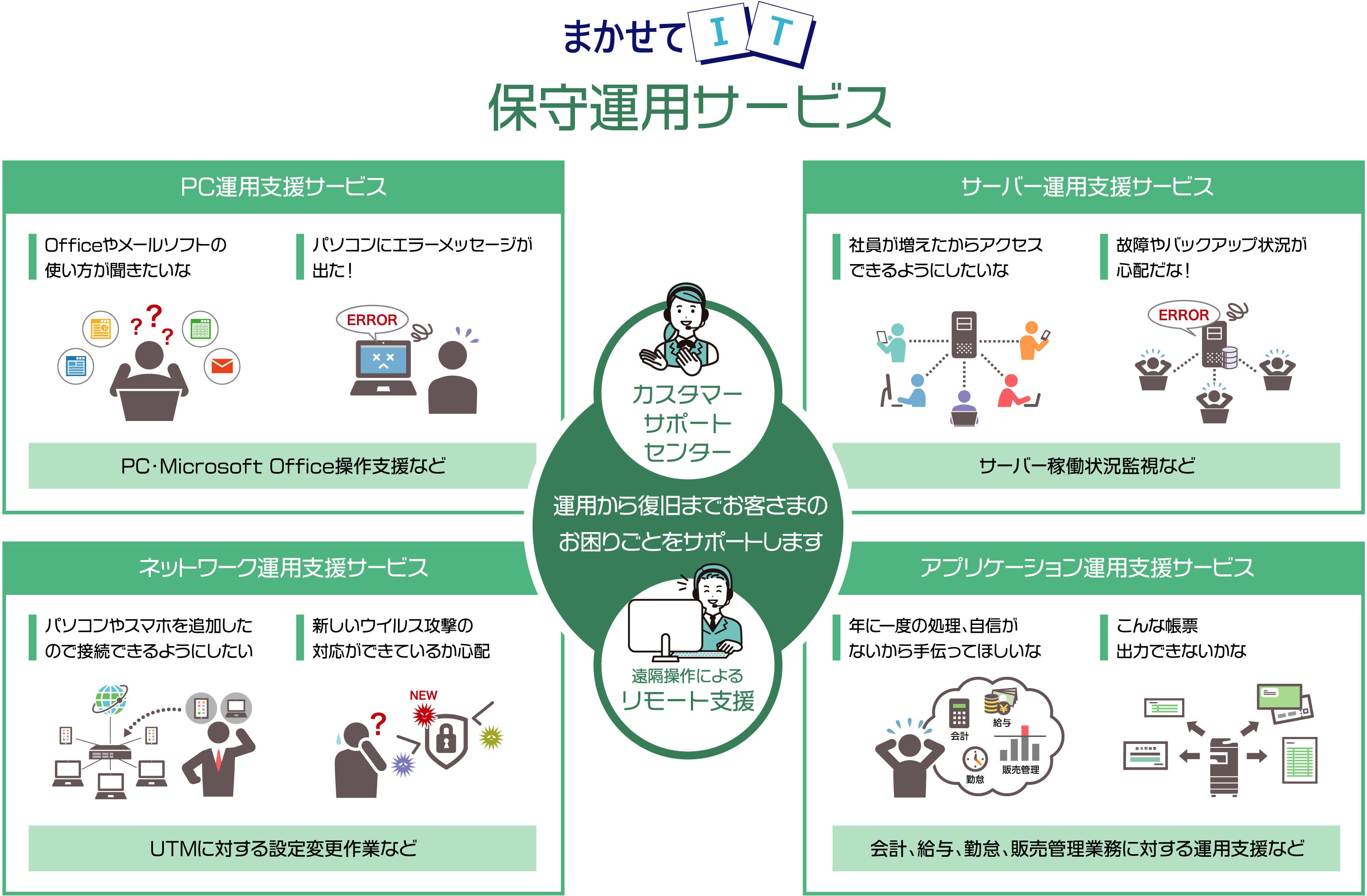 | PC運用支援 | PC運用支援サービス スタンダード PC運用支援サービス アドバンス PCヘルプデスクサービス |