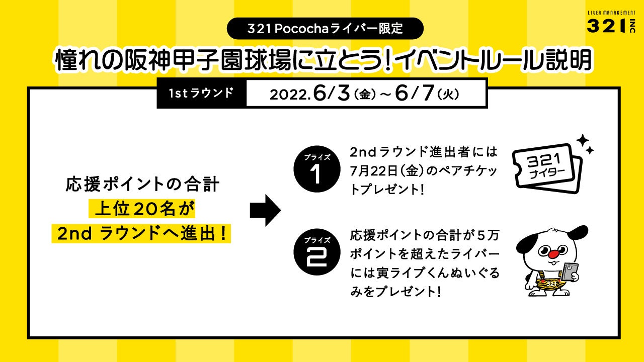 6月3日(金)〜6月7日(火)の5日間のPococha内応援ポイント合計数上位20名が2ndラウンドに進むことができます。