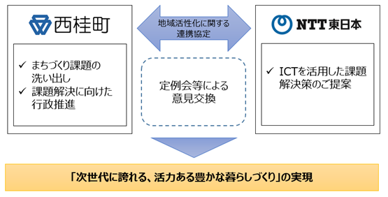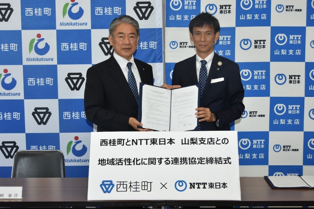 山梨県西桂町(町長:山崎 泰洋 以下、西桂町)と東日本電信電話株式会社 山梨支店(支店長:横山 明正 以下、NTT東日本 山梨支店)は、地域課題の解決及び地域の活性化を図ることを目的として意見交換を進めてまいりましたが、より連携を強化していくため、「地域活性化に関する連携協定」を締結いたしました。