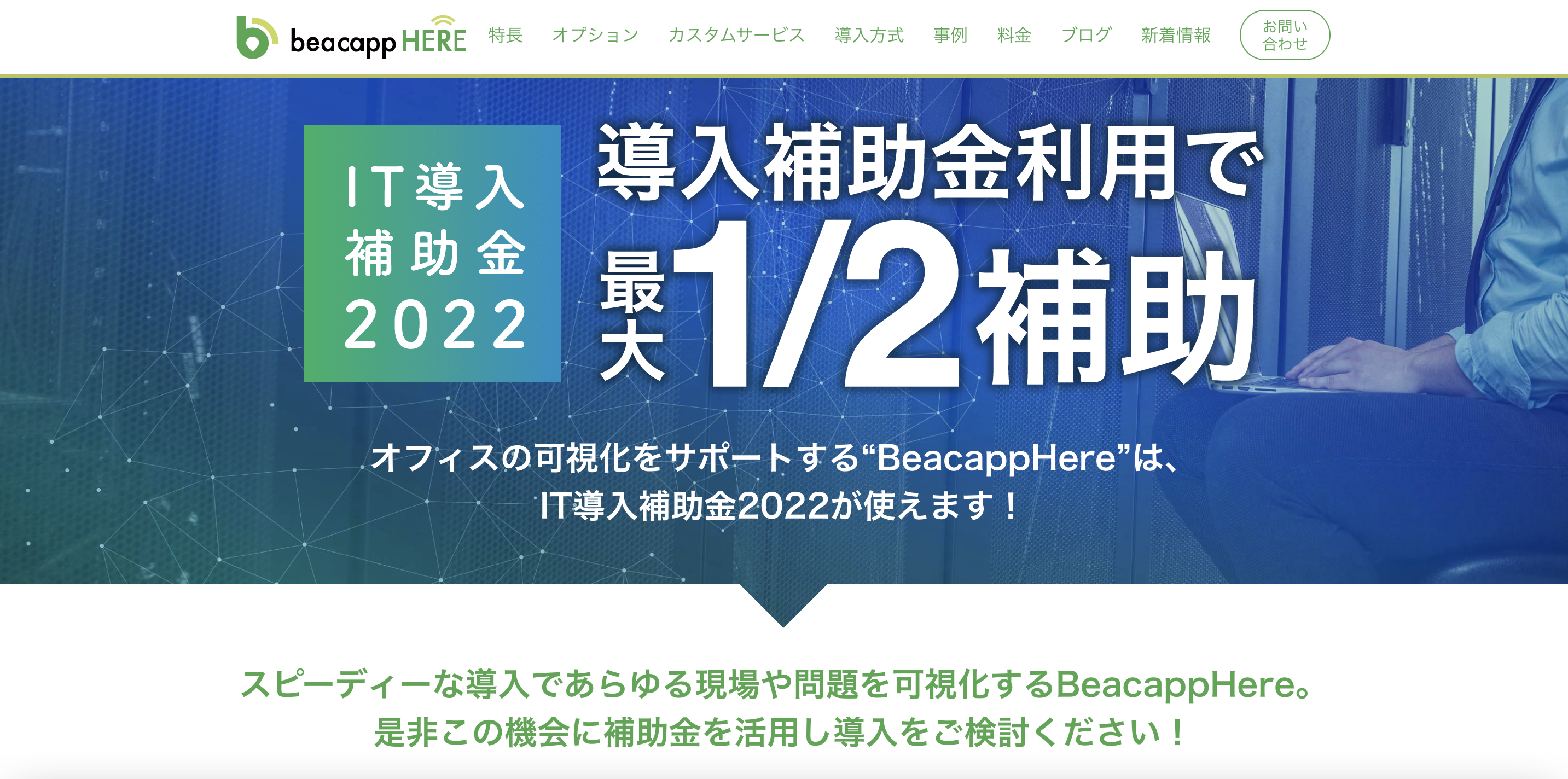 さらに、Beacapp HereサービスはIT導入補助金2022の対象となるため、IT導入補助金を利用することで、最大1/2の補助が可能となります。