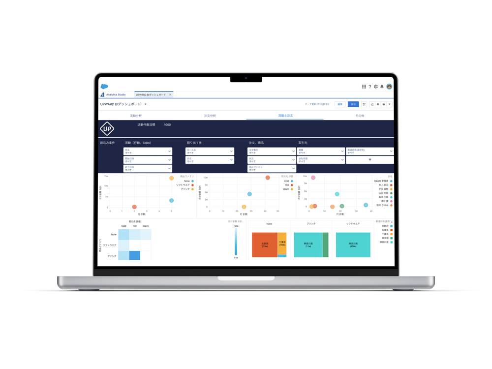 こうして収集・蓄積した顧客接点データと営業実績を紐づけることで、「どの製品・サービスがどのエリアで売れているのか」「活動と売上実績の相関」「商談フェーズに適したコミュニケーションチャネル」などあらゆる角度からの分析を可能にし、営業変革を強力に推進します。