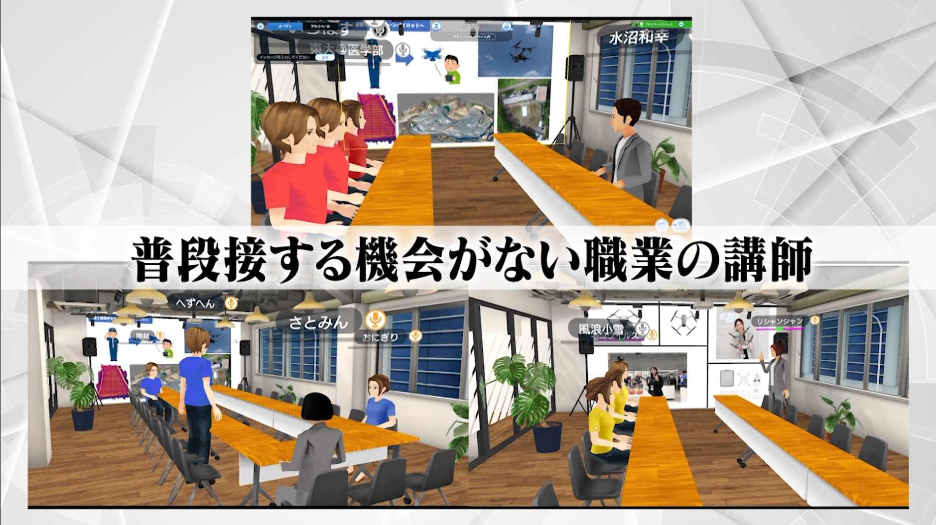 令和ならではの『新しい生き方』を実践する社会人としてe-SPORTS事業者やドローン関連、Webデザイナーの方などをメタバースにご招待。高校生徒の合計30分間の交流にて、平均10問以上の疑問・悩みに回答しました。