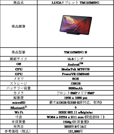 ■「 LUCA タブレット TM152M8N1 」 商品 仕様