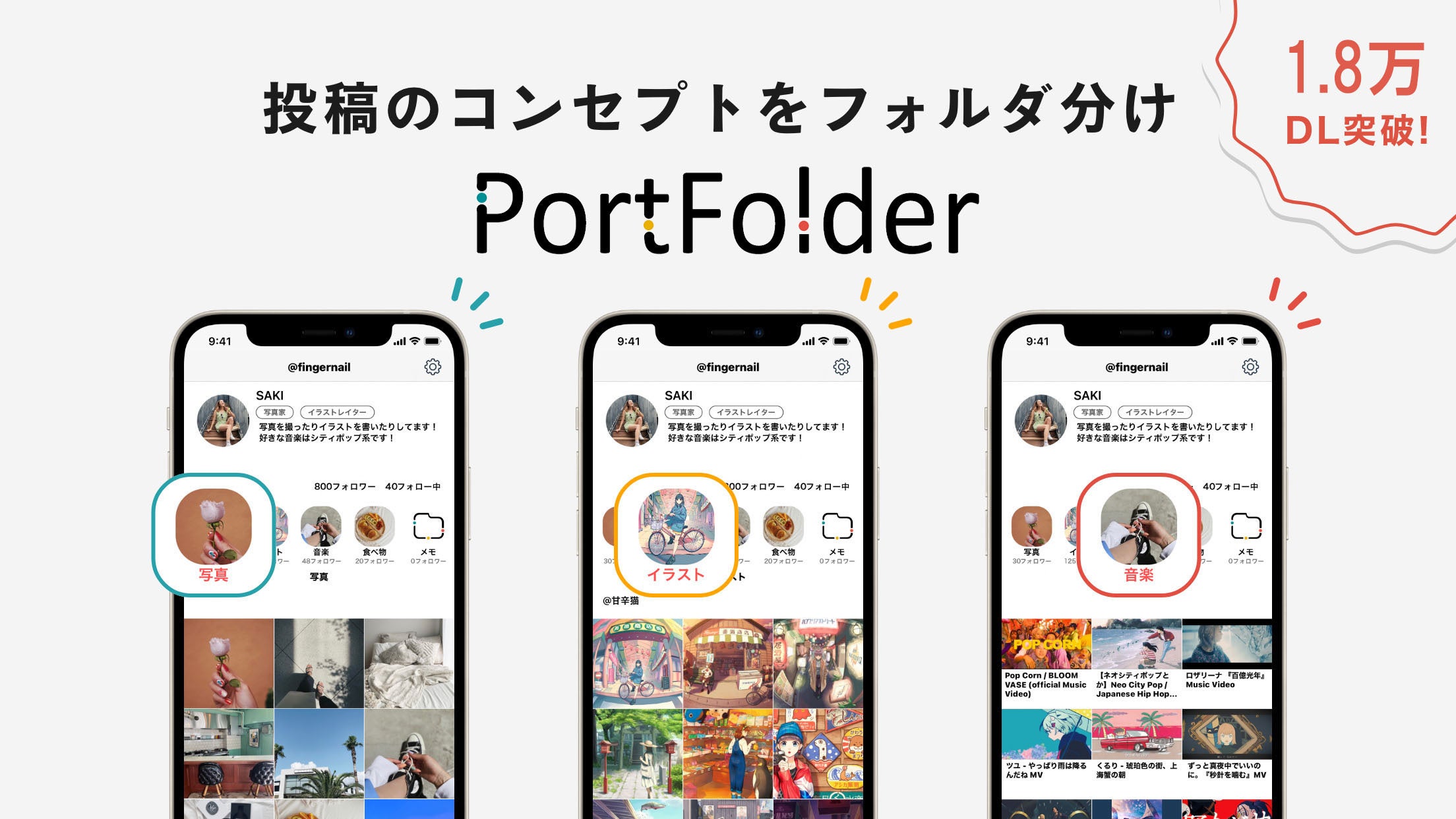 PortFolderは投稿をフォルダに分けて公開できるSNSサービスです。 (iOS、Android、Web対応)
