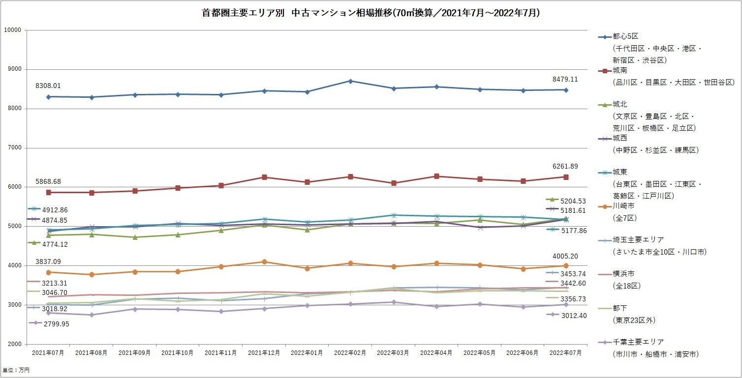 ■全国主要エリア 中古マンション相場推移(2021年7月~2022年7月)