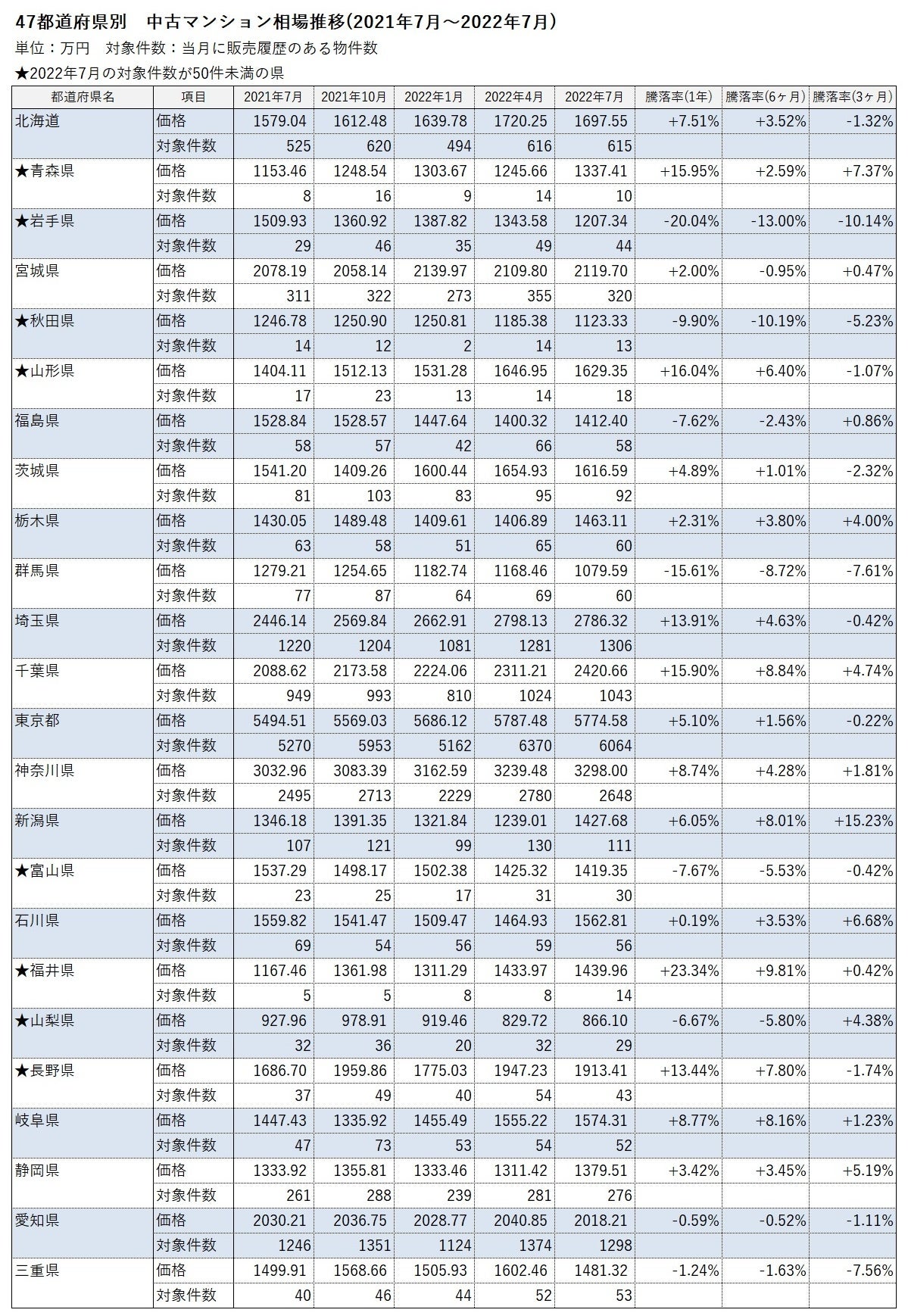 ■47都道府県 中古マンション相場推移(2021年7月~2022年7月)