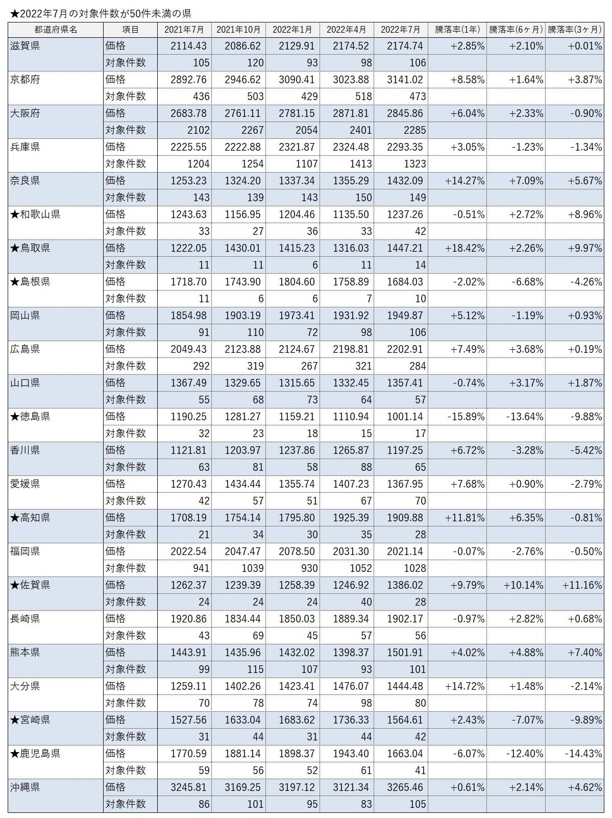 ※2022年7月の対象件数が50件未満の16県については、算出根拠となるデータ数が少ないため★をつけて掲載。