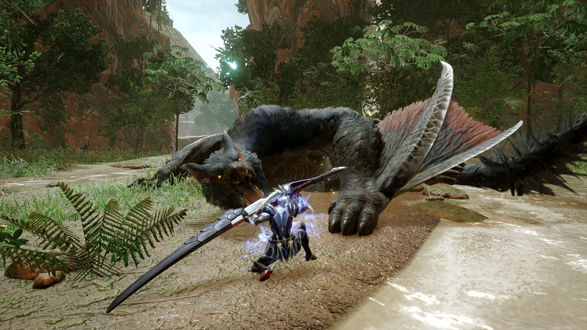 翔蟲の力が、ハンティングアクションをさらに進化させる。多彩なアクションを生み出す全14武器種の特徴を順次公開。動画では、『モンスターハンターライズ:サンブレイク』から追加される全武器共通アクションの「疾替え」を使った、入れ替え技を瞬時に切り替える一連の流れを紹介。