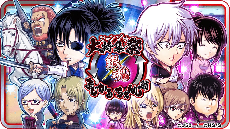 「ジャンプチ ヒーローズ」は、本日より『銀魂』を特集した「ジャンプチ大特集祭 銀魂 まじかるちぇんじ篇」を開催いたします。『週刊少年ジャンプ』で2004年から連載を開始し、累計発行部数は5500万部を突破。アニメ化や実写映画化なども大きな話題となりました。2018年の連載終了後もなお根強い人気を誇る『銀魂』の世界が「ジャンプチ ヒーローズ」に再び降臨。