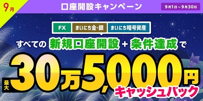 2022年9月1日(木)~9月30日(金)の期間中にFXの口座を新規で開設された方