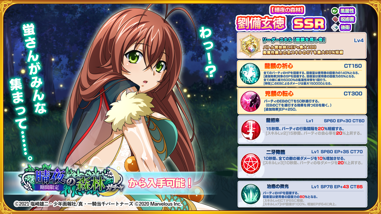 本日開始の「晴夜の森林ガチャ」からは、限定闘士「【晴夜の森林】劉備玄徳」が新たに登場する他、