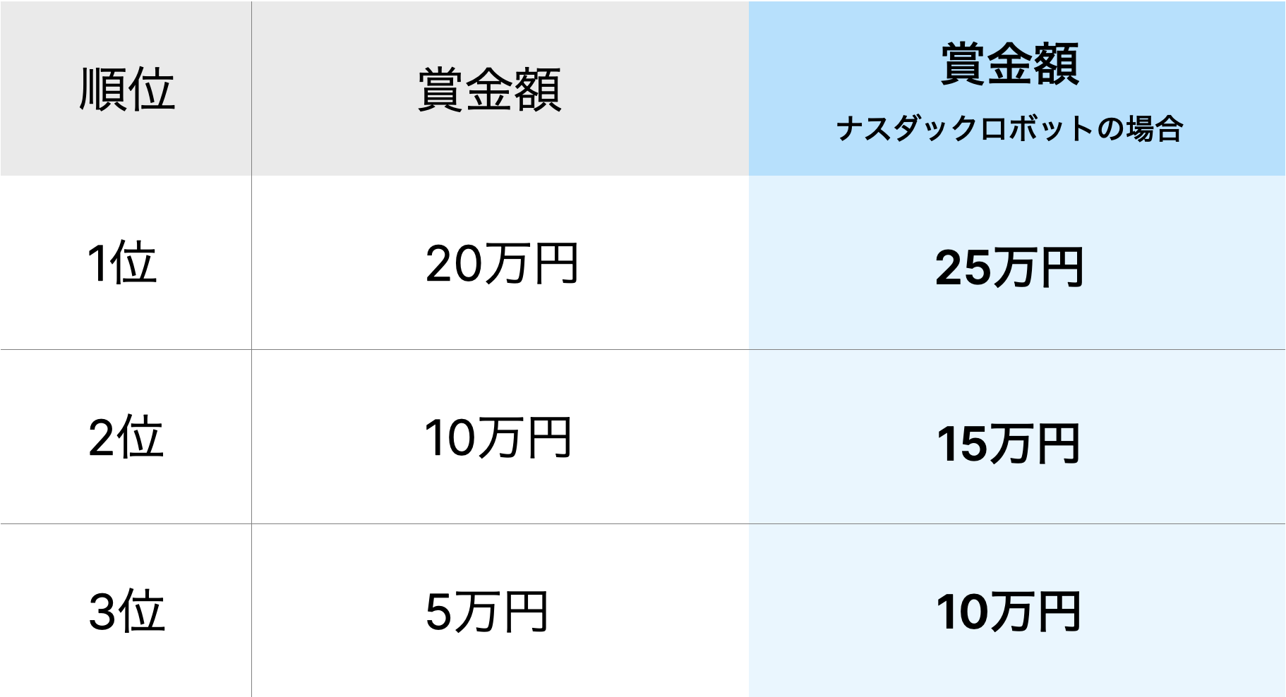 「順位賞金」と「NASDAQロボット賞金」の2種類