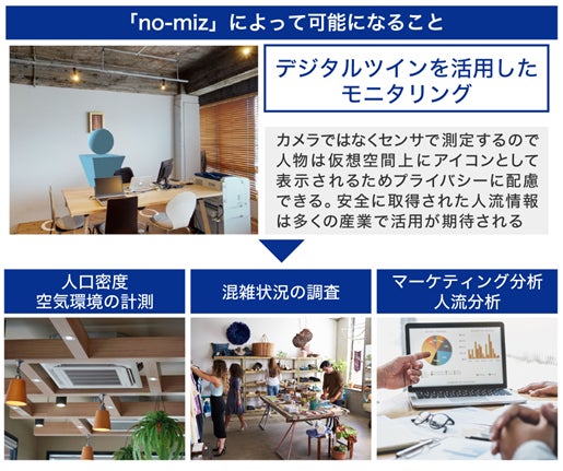 さらに、人のモニタリングはカメラではなくセンサで実現しており、3Dデジタルツイン上に人物をアバター(アイコン)で表示するため、プライバシーを侵害しません。そのため、感染症対策だけでなく、マーケティング、生産管理、見守り対策など、幅広い分野へのビジネス展開が可能だと考えています。