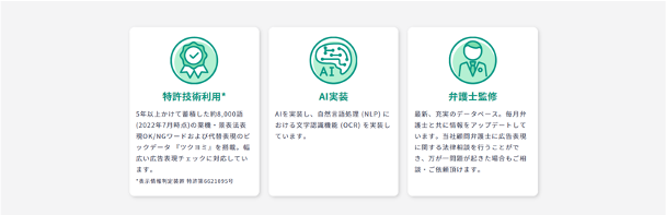 監修コストを大幅に削減するとともに、法律遵守と企業の信頼性向上が期待できます。