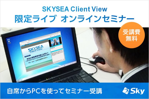 Sky株式会社では、企業・団体向け クライアント運用管理ソフトウェア「SKYSEA Client View」を活用した情報漏洩対策やIT資産管理などについてご紹介する「SKYSEA Client View 限定ライブ オンラインセミナー」(受講費無料)を随時開催しています。