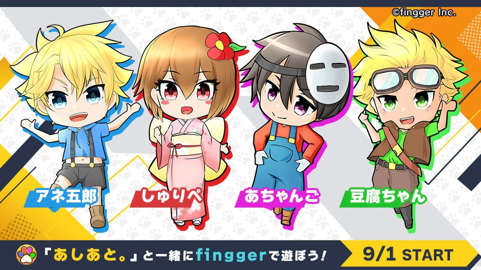 コラボ期間中は「あしあと。」の所属メンバー、「アネ五郎」「しゅりぺ」「あっちゃんご」「豆腐ちゃん」の4名が、finggerの様々なコンテンツを配信します。