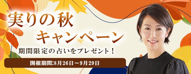 『村野弘味の九星気学』では、『実りの秋キャンペーン』を開催中です。期間中、キャンペーン対象の鑑定を占っていただいた方に、キャンペーン期間限定の占いをプレゼントいたします。あなたにこの秋、どんな出来事が待っているのか…。この機会に是非、「村野弘味の九星気学」で占ってみてください。