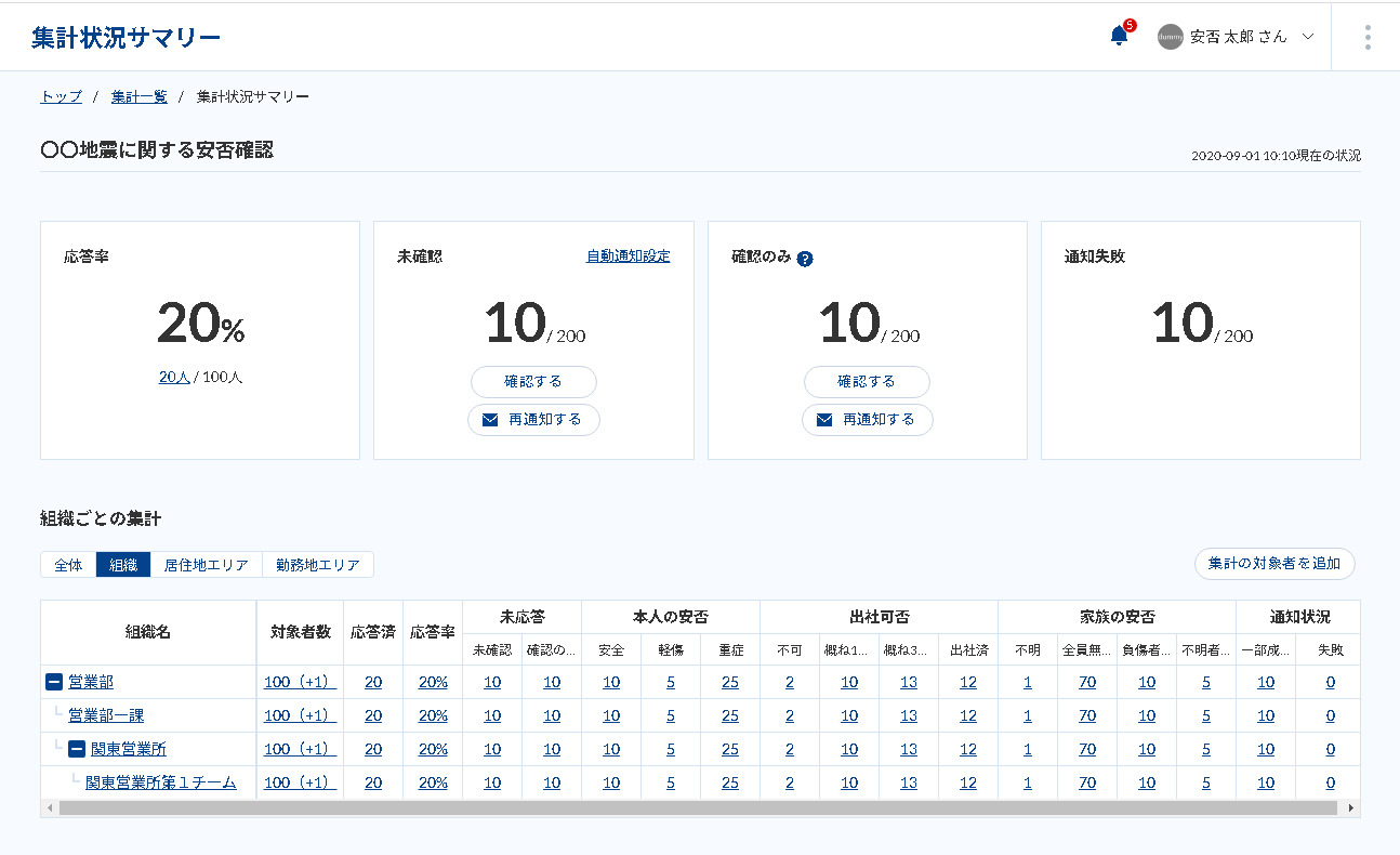 操作画面は閲覧するデバイスや画面サイズに合わせて自動的に最適化されるので見やすく、直感的な操作が可能。災害発生時の安否報告要請はスマートフォンへのプッシュ通知のほかメール、LINEで行うことも可能なので迅速・円滑な安否確認に繋がります。