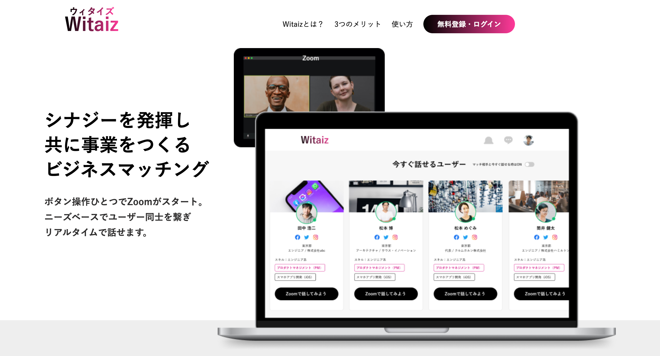 「誰もが、好きな場所で、好きな人と、好きな仕事が、できる。」ーーWitaiz(ウィタイズ)は、ビジネスパーソン同士がボーダレスにつながり、シナジーを生み出し、やりたいことを実現できる社会を目指します。