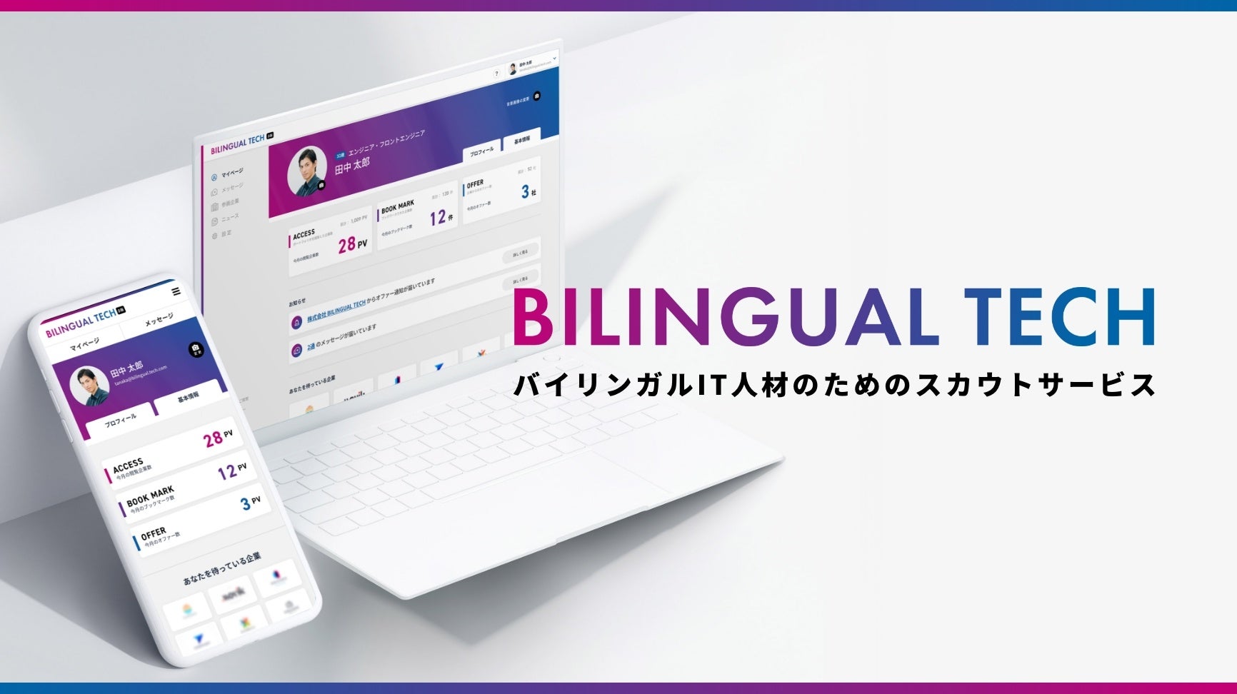 BILINGUAL TECHは、ITスキルと語学スキルを兼ね備えた「バイリンガルIT人材」と企業を繋ぐダイレクトリクルーティングサービスです。