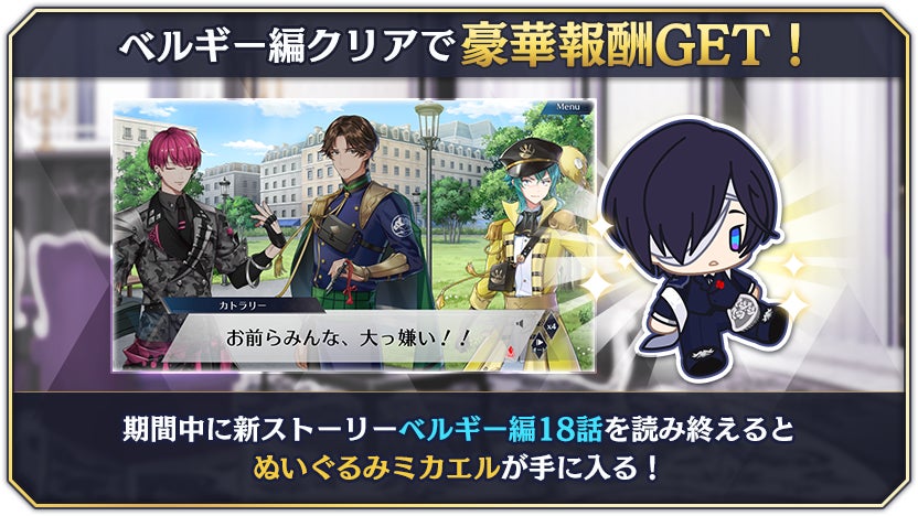更に、ベルギー編の18話を読了しキャンペーンミッションで「ぬいぐるみミカエル」を獲得する事が出来ます!